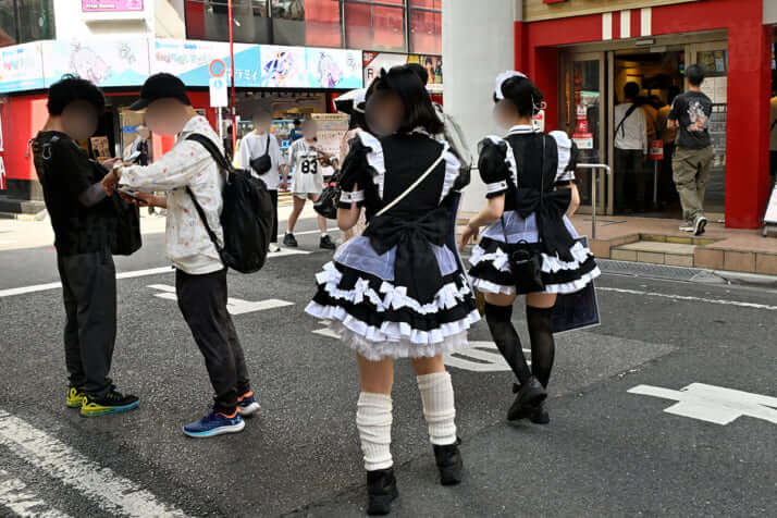 5枚目/7枚中 24歳元地下アイドルを殺害した被告に懲役16年 半年間のパパ活に「退職金全額6000万円」を注ぎ込んだ「富士ゼロックス」元社員57歳の常軌を逸したリタイア生活 社会2025年11月07日 秋葉原の路上で勧誘する「コンカフェ嬢」たち 0