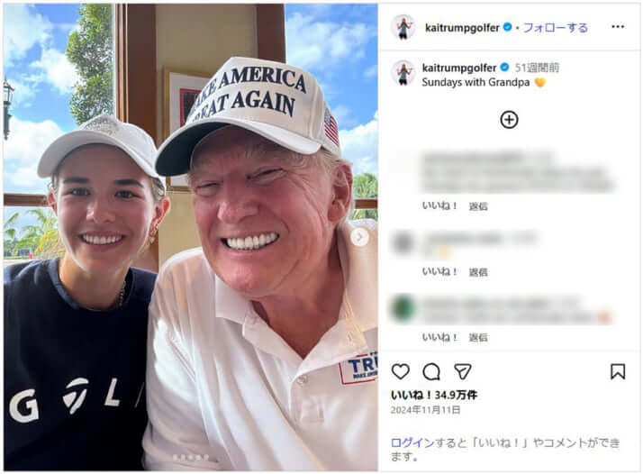 2枚目/6枚中 「トランプ氏の孫娘」大会出場決定で米ゴルフ界が大騒ぎ トップジュニアに程遠い腕前でも、大会側が評価した「真の実力」とは スポーツ2025年11月10日 カイ・トランプ公式Instagram(@kaitrumpgolfer)より 0