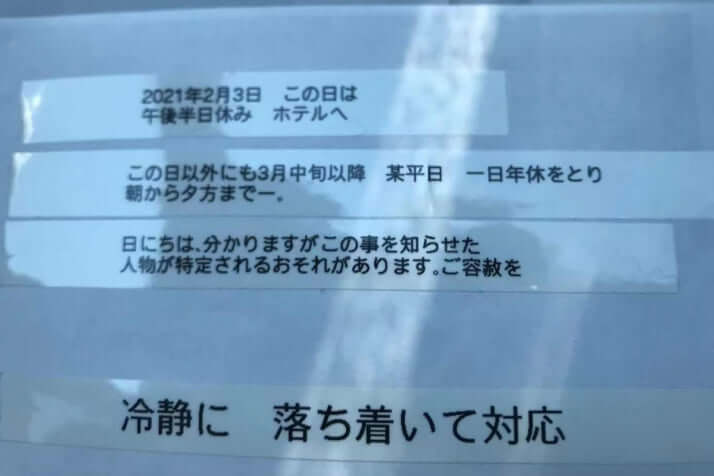 6枚目/10枚中 GPSで行動を監視されデマの“不倫怪文書”まで…2年間ストーカー被害にあった女性が告白「犯人はバイト先のコンビニ経営者の夫で、前新潟市議でした」 社会2025年11月19日 Bさん宅などに送りつけた怪文書 0