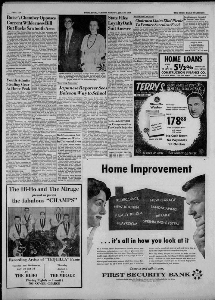 小池英夫が米国を周遊中に紹介された地元新聞の記事。左上のメガネの男性が小池(出典:newspapers.com:The Idaho Stateman、06/30/1963 アイダホ・ステーツマン紙1963年6月30日付)