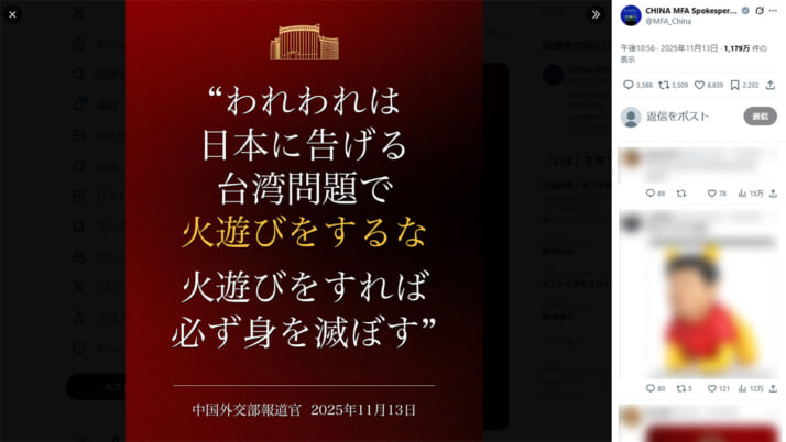 中国政府外交部のXより
