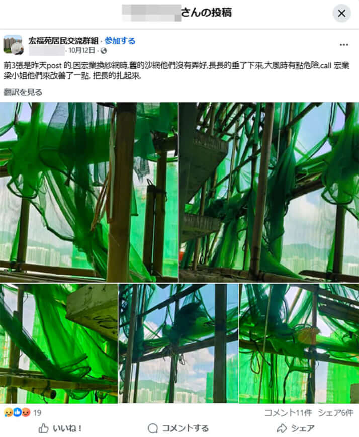 4枚目/5枚中 【香港・高層団地火災】被害拡大の要因は“防護ネット”と“発泡スチロール”か 住人たちを悩ませていた「大規模修繕工事のトラブル」とは 国際2025年11月28日 Facebookグループ「宏福苑居民交流群組」より 0