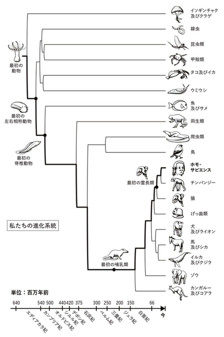 2枚目/5枚中 “本当に頭が良い人”とは「他者に興味を持てる人」――脳科学者が語る「知性」と「感情」の本質的な関係 社会2025年12月04日 「私たちの進化系統」(出典:『知性の未来:脳はいかに進化し、AIは何を変えるのか』より、レベッカ・ゲランダ―によるオリジナルイラスト) 0