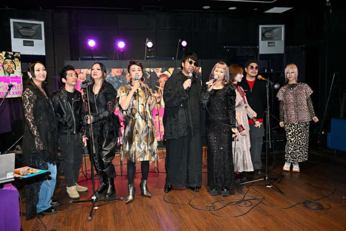 舞台「三文オペラ 歌舞伎町の絞首台」の囲み取材に応じた秋吉久美子ら