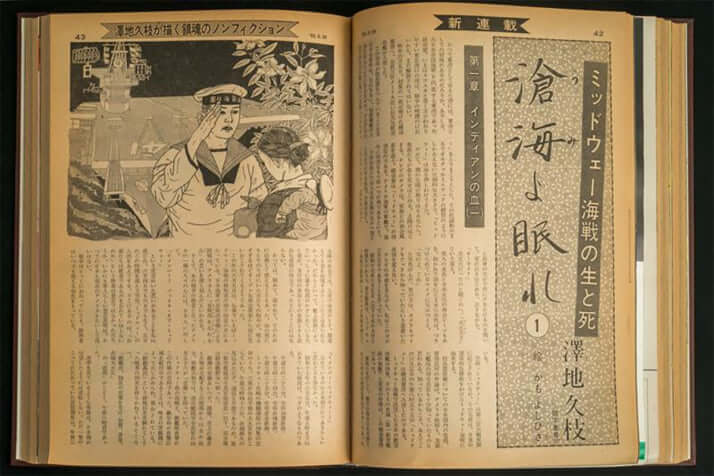 2枚目/5枚中 戦争ノンフィクションの金字塔『滄海よ眠れ』が復刊 ミッドウェー海戦の日米の全戦死者「3418名」を特定した「澤地久枝さん」執念の作業 社会2025年12月27日 連載第1回の誌面「週刊サンデー毎日」1982年6月20日号(写真提供:毎日新聞出版) 0