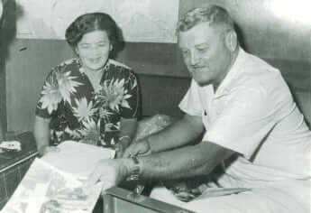 比嘉さんがアナタハン島へ渡ったのは昭和18(1943)年。夫と共に、当時の島にあったコプラ工場(注=ココヤシから食用油をとる)に勤めるためだった。