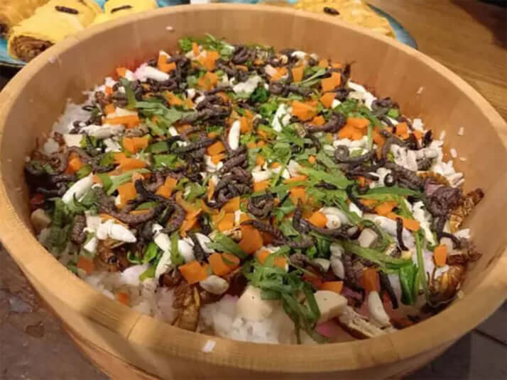 2枚目/10枚中 コオロギ食ブームではバッシングも…信州“昆虫食の聖地”に残る食文化 カイコ入りポップコーン、蜂の子フィナンシェに見る「受け継がれる伝統」 ライフ2026年01月03日 ザザムシのお寿司 0