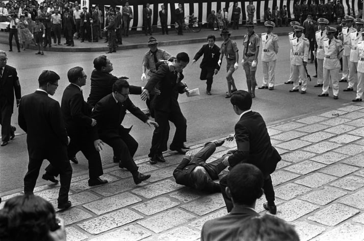 2枚目/5枚中 「三木首相殴打事件」の右翼がすべてを目撃していた…保釈中の「田中角栄」にケタ違いの警備が敷かれた理由 社会2026年01月10日 佐藤栄作元首相の国葬会場(日本武道館)で三木首相を殴り、取り押さえられる筆保氏(中央) 0