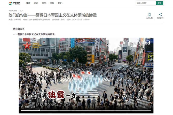 6枚目/12枚中 「高市首相」が旧日本軍兵士の亡霊と手をつなぎ…自民圧勝で中国「人民解放軍」が流した「生成AI動画」の中身 総理は「羊の皮をかぶった狼」 批判の矛先は「卓球・張本」「サッカー・三苫」へも 中国2026年02月14日 動画画像(「解放軍報」HPより) 0