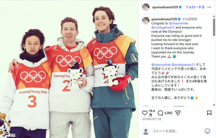 3枚目/4枚中 「平野歩夢」と金メダルを争ったレジェンド「ショーン・ホワイト」の功績…98年「スノボ競技」採用は五輪の命運を握る決断だった スポーツ2026年02月15日 平野歩夢選手(本人のインスタグラムより) 0