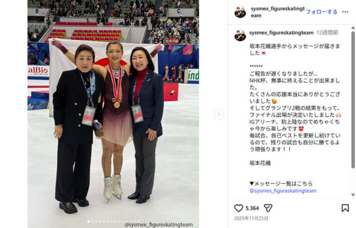 3枚目/7枚中 銀メダル獲得! テレビに引っ張りだこの「坂本花織」をバラエティが放っておかない理由 「お笑いタレントとそっくり」との指摘も スポーツ2026年02月21日 シスメックス スケートチームのInstagramより 0
