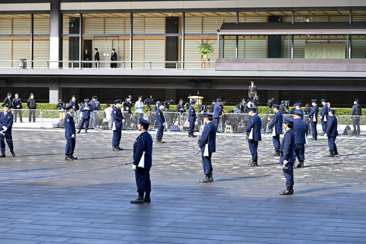 9枚目/12枚中 “年始の珍事”を受けて「天皇誕生日の一般参賀」警備強化のビフォーアフター…乱入した男が“公然わいせつで現行犯逮捕”の後始末 社会2026年02月28日 天皇誕生日の一般参賀の警備体制 0